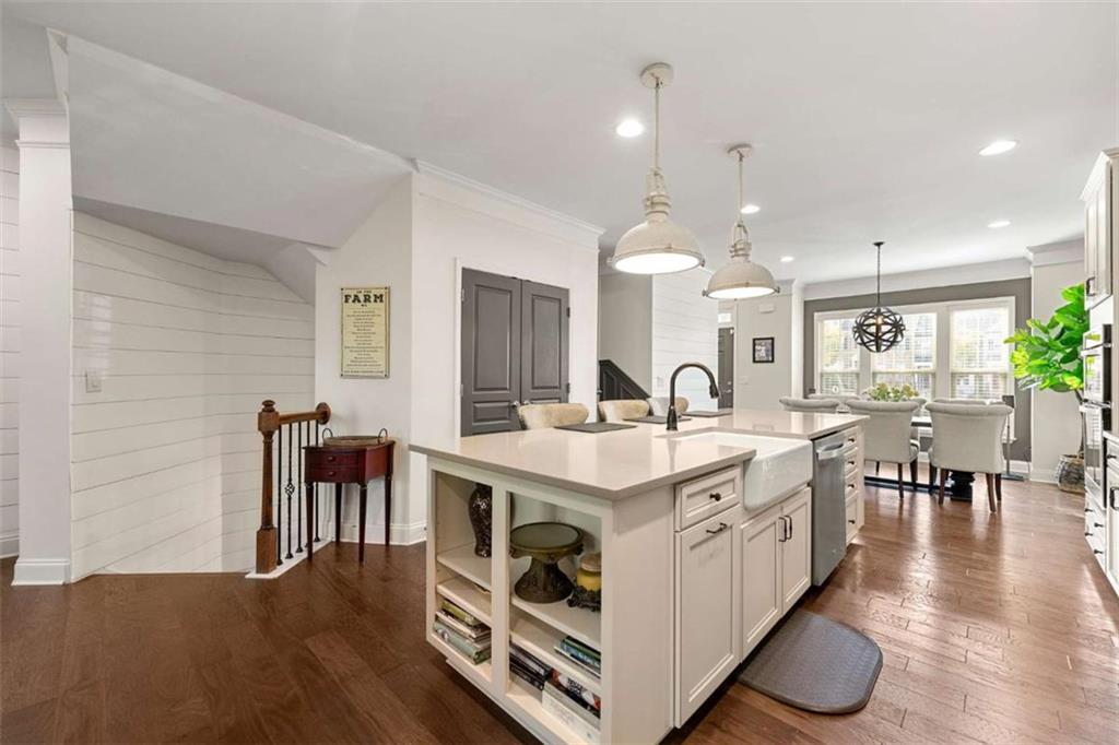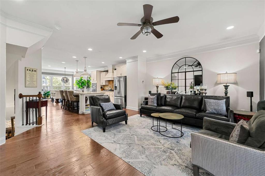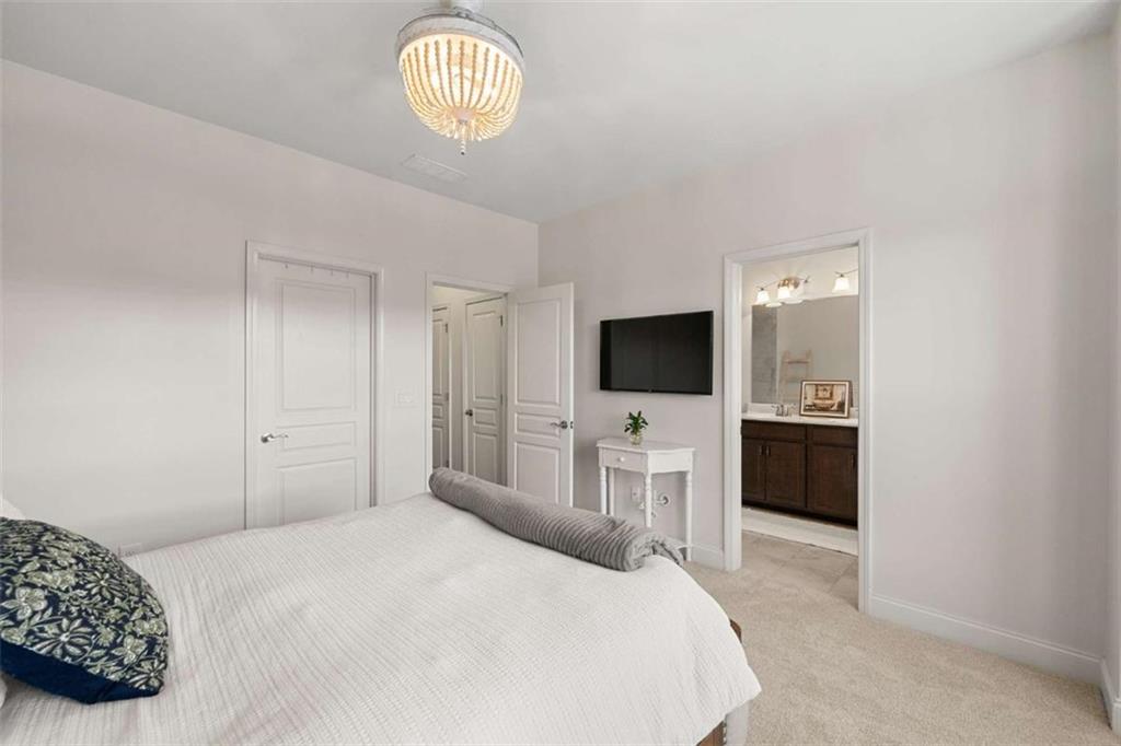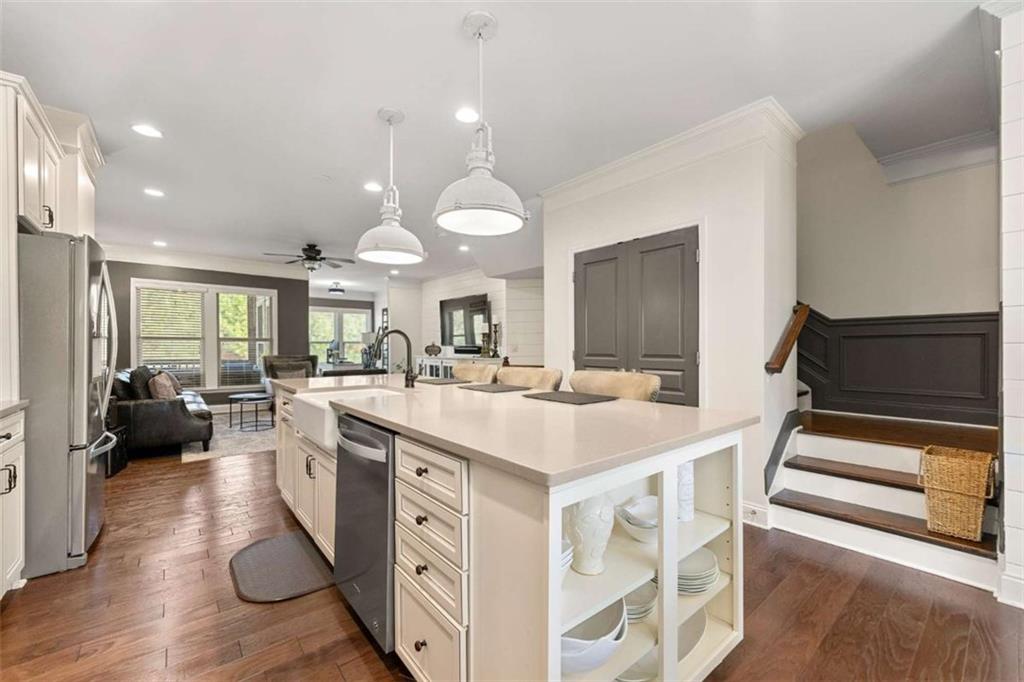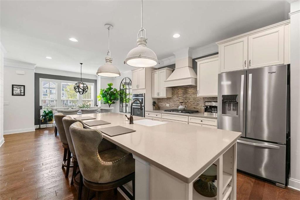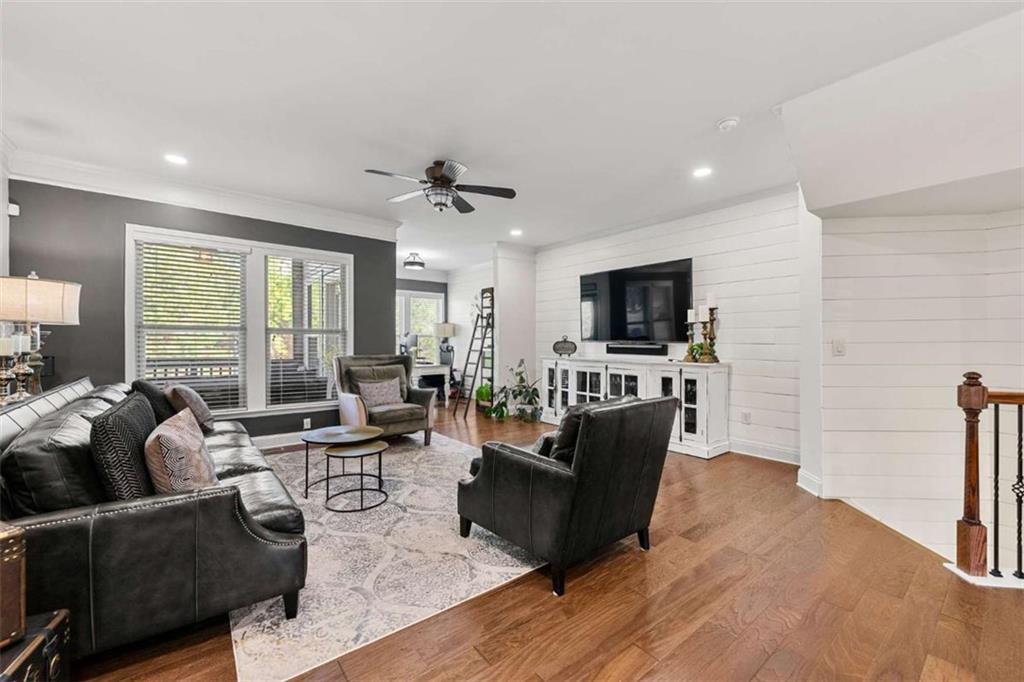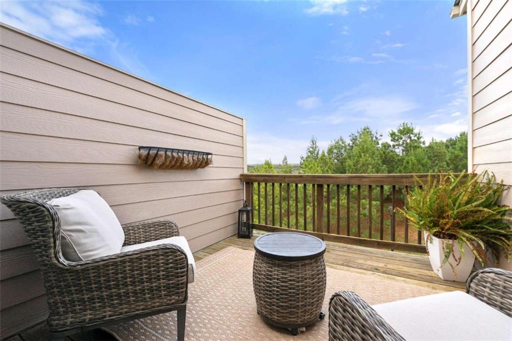 Welcome home to this Designer's Showcase! This stunning 3 Level townhome features a Chef's kitchen with Quartz Countertops, a Beautiful Island as a centerpiece complete with Open shelving as Display Storage. Step past the Dining Room and Kitchen and take in the spacious family room. a Cozy sunroom and private deck complete the Main level of this home. Don't miss the shiplap wall treatments and gorgeous accent walls which compliment each room to perfection. Upstairs, you'll find an ensuite bedroom guest room. The Owner's suite Glamorous Bath with double vanity and spa like shower and custom designed closet. The Owner's suite features a balcony which provides lush, breathtaking private views. All of this in the popular Legacy the Riverline Gated Community. Convenient to shopping, entertainment and minutes for I-285