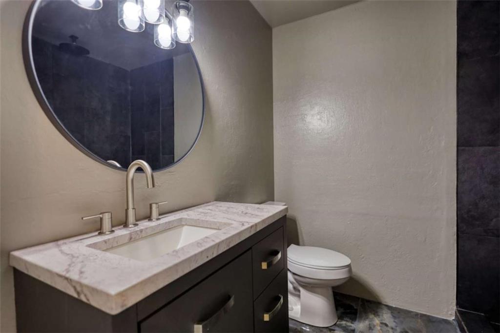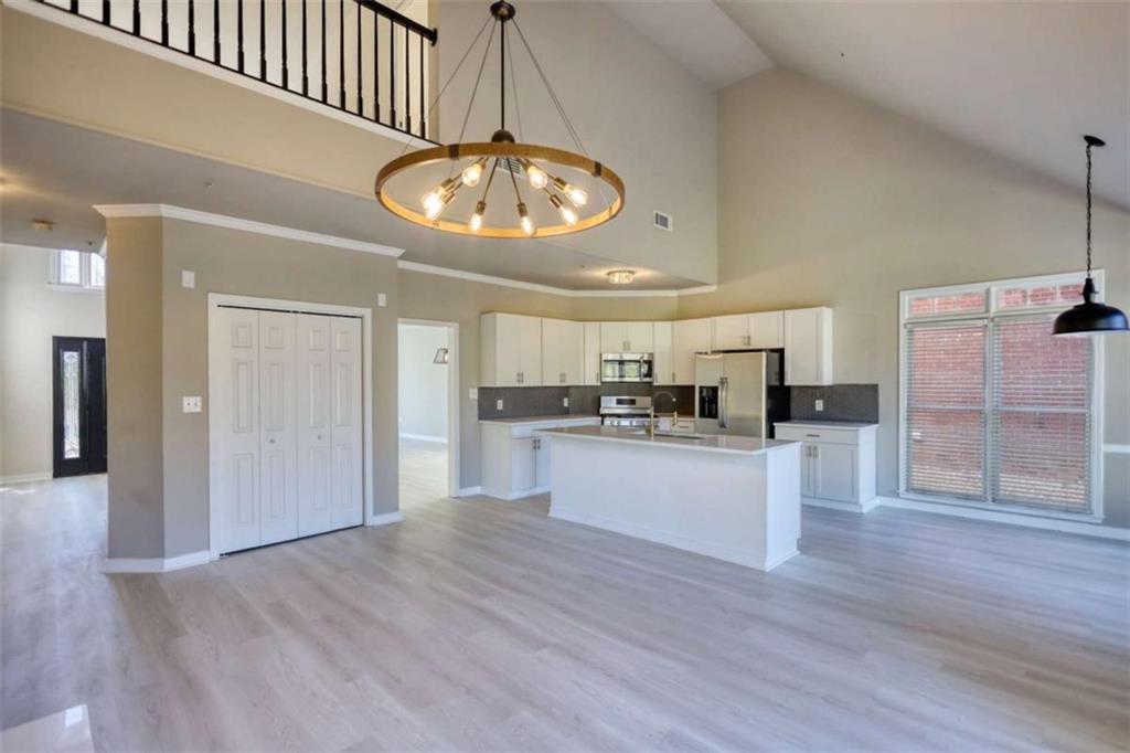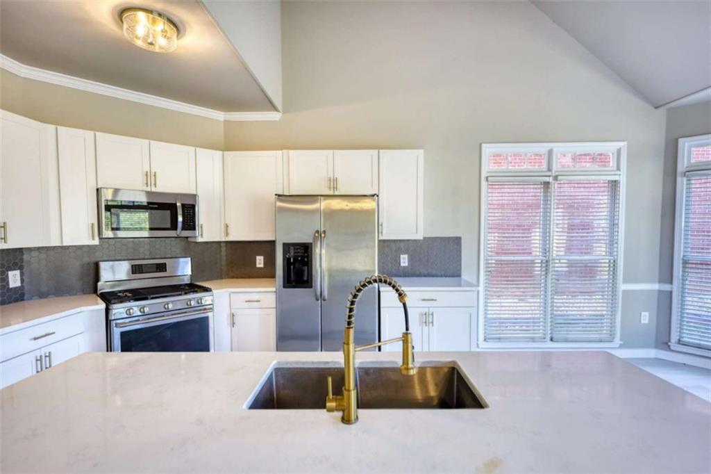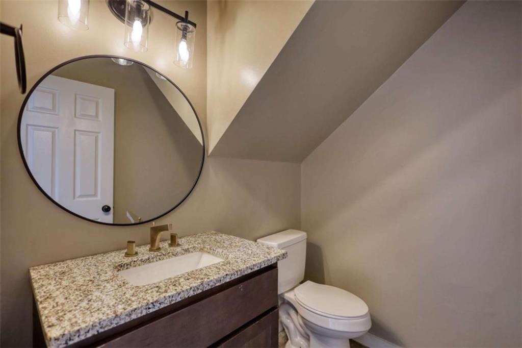 Beautifully remodeled, brick front home on a level lot. Enter into a two story foyer, with an open concept living and dining room to your right. Here you'll find a large and new picture window. The kitchen overlooks the family room with a gas fireplace and an exit to the backyard. Choose to sit in the eat-in kitchen or more informal bar seating at the kitchen island. The master bedroom, laundry room, and half bath are on the main level. This bedroom has vaulted ceilings and an exit to the backyard. The master bath houses the walk in closet, a dual head tile shower, and double vanities. Upstairs are three additional bedrooms and a full bathroom. A list of additional contractor updates include: all new paint inside and out, in the kitchen: new garage door, new picture window in living room, updated granite and backsplash in kitchen, new cabinets with gold hardware, stainless steel appliances, all new light fixtures, fresh interior paint, new carpet in bedrooms, new tile flooring in master bath, updated vanities in all bathrooms. Make an appointment today and let's put your LAST name on this FRONT door!