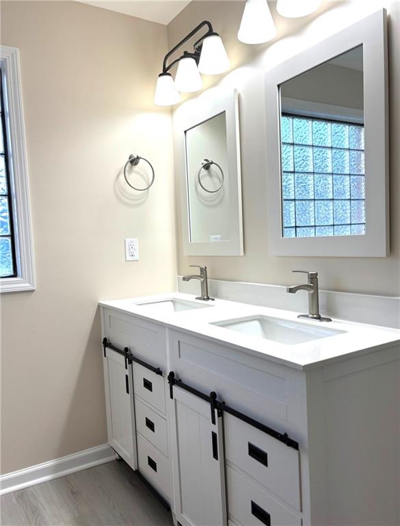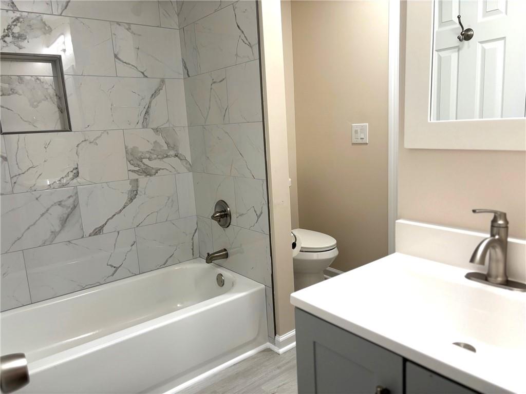 Fabulous location just outside the Perimeter in Cobb county. A rare 2-car garage townhouse. End unit with brick front and green space in the back. Spacious floorplan with 3 bed 2.5 baths. Built in 2003 and totally renovated in the fall of 2025. Brand new kitchen, baths, flooring, etc. Brand new roof, windows and AC! Upscale renovation, better than new. New washer/dryer included. A nice private patio in the back with great new landscaping around. HOA is only $350 per year. No rental restrictions. Amazing opportunity. It is like living in a single family home with no yard maintenance. Close to the Airport, Downtown Atlanta, I-285 and I-20. Stepless private entry, large insulated garage. Lawn maintenance by HOA. A quiet community with Publix and restaurants just minutes away. Owner financing avaialble with 50% down.