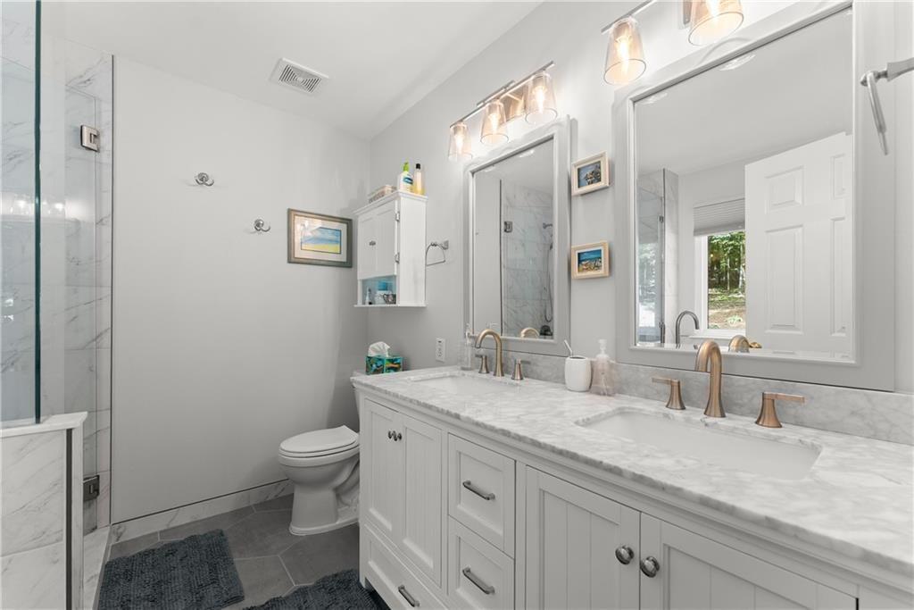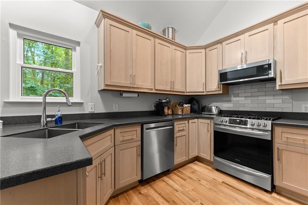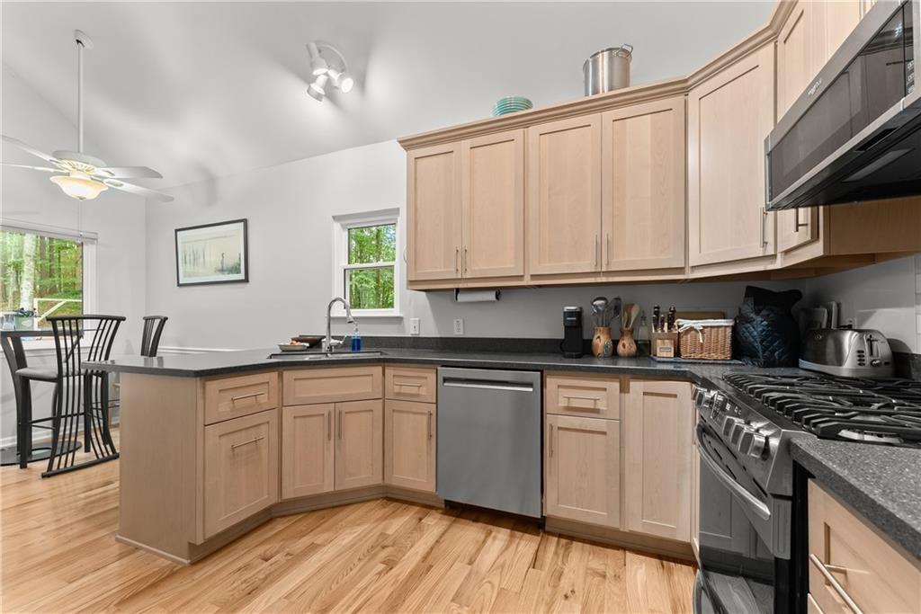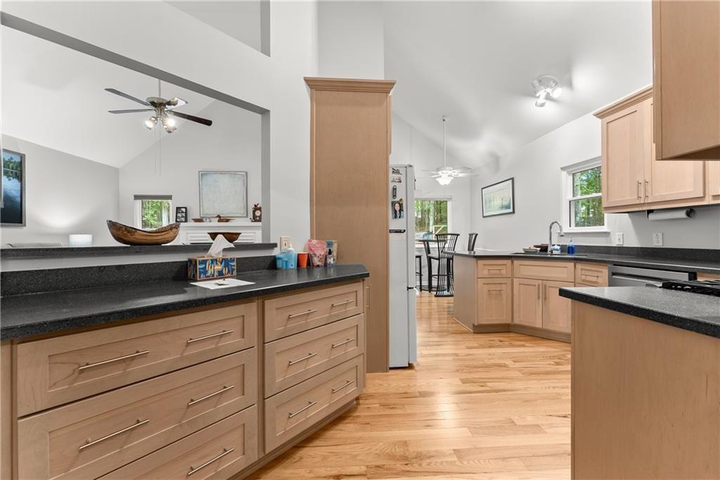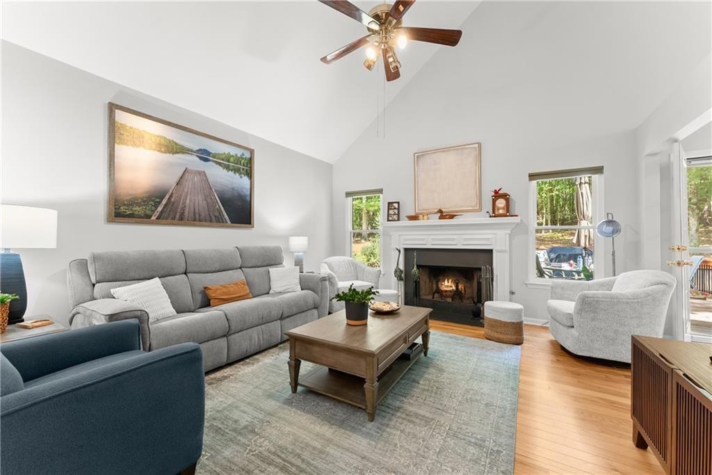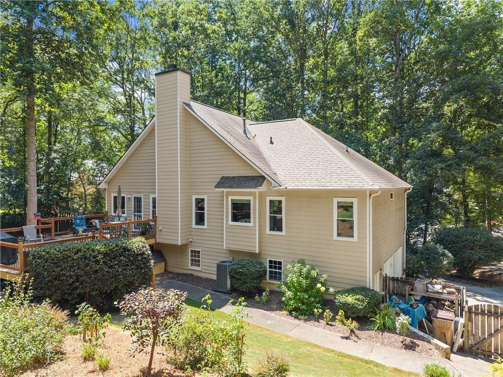 Come experience the space in this beautifully maintained 4-bedroom, 3-bath home in the serenity of an inviting Lake Lanier community— where every day feels like a retreat! Nestled on 1.11 acres, this home offers the perfect blend of privacy and convenience, located just minutes from GA 400, Highway 985, Port Royale Marina, and Pelican Pete’s Lakeside Grill. This property provides easy access to boating, dining, and all the recreation the lake has to offer, plus includes the benefit of Forsyth County Schools! Step inside to feel right at home in the light-filled grand foyer, living room with soaring cathedral ceilings and cozy fireplace, and open dining area perfect for gatherings or cozy evenings in. The remodeled kitchen features stainless steel appliances, ample counter space, glistening hardwood floors, and a cheerful breakfast nook overlooking the spacious, private backyard. The main level continues with the primary suite and fully renovated deluxe en suite bathroom with soaking tub, tiled shower and floors. Two more roomy bedrooms and a hall bath give options for room usage. The split-level design offers flexibility, with multiple living spaces and a private lower-level suite — great for guests, in-laws, or a home office. Enjoy outdoor living at its finest in the fenced backyard, complete with mature trees and plenty of space for pets, play, or grilling. The large lot provides privacy and room to expand or add your own personal touches. The home also features new double-paned windows for energy efficiency, newer deck, an extra 8 x 16 workshop attached to the two-car garage. Whether you’re seeking a full-time residence or a weekend retreat, this home delivers lake-life charm with the convenience of nearby shopping, dining, and marinas, and award-winning schools. Don't miss this opportunity!