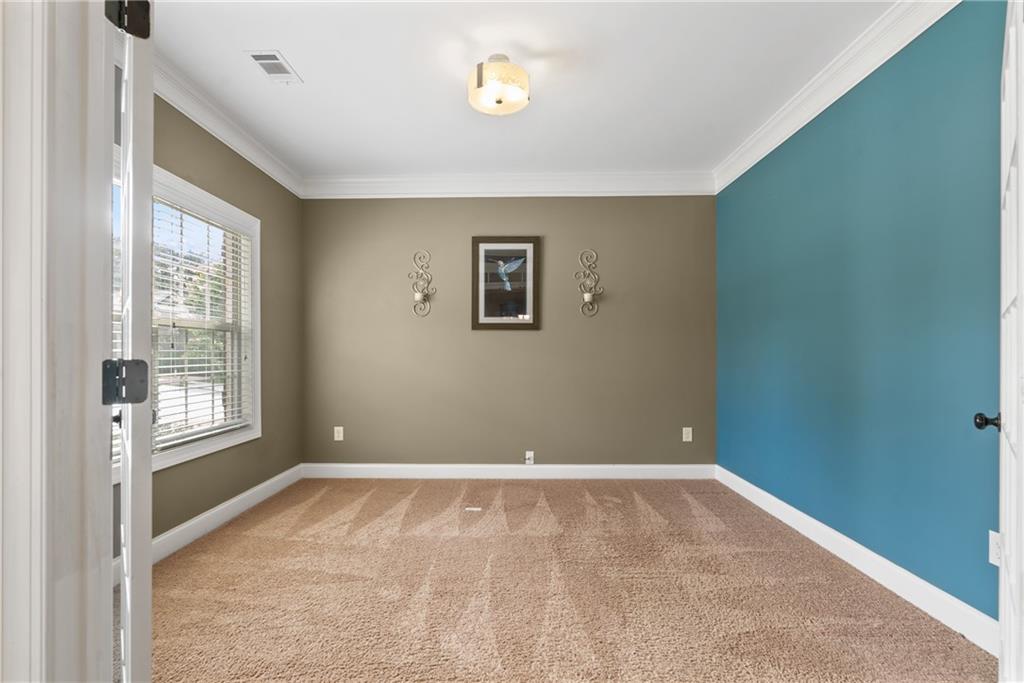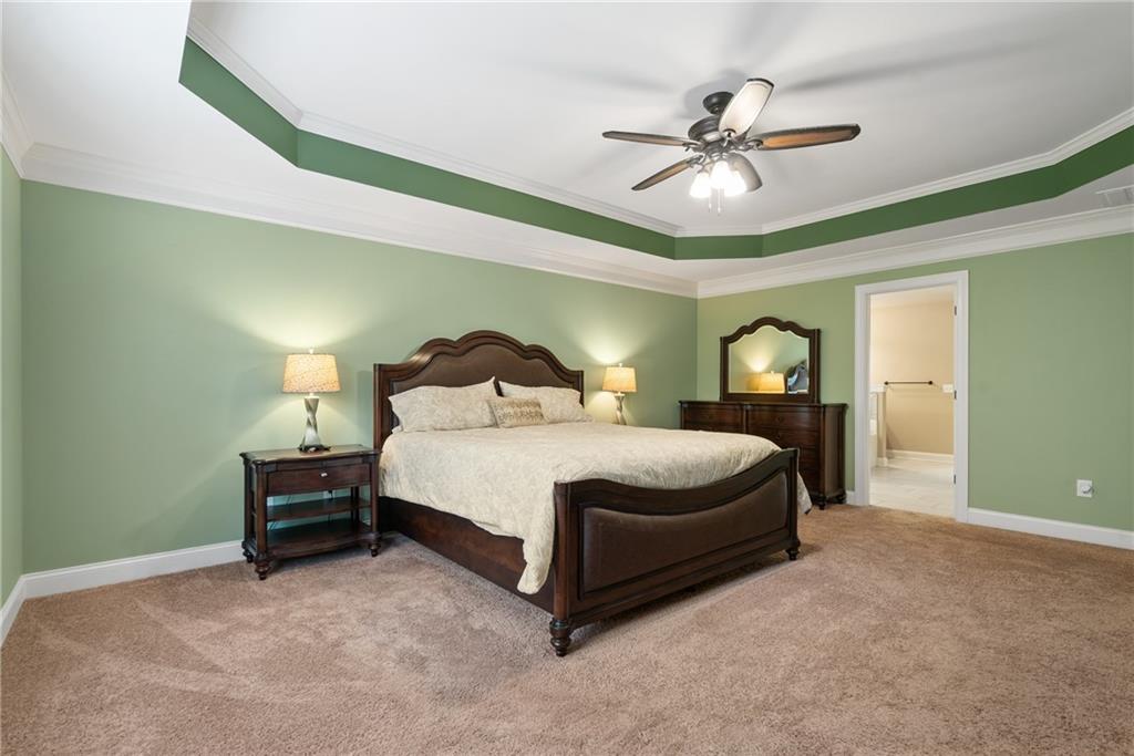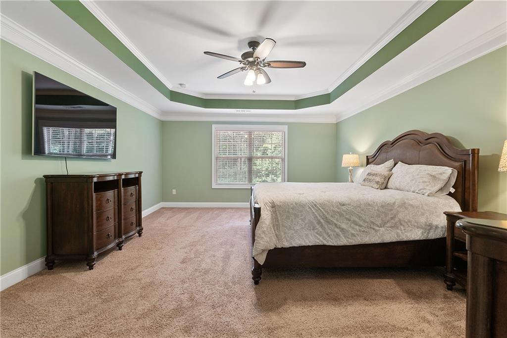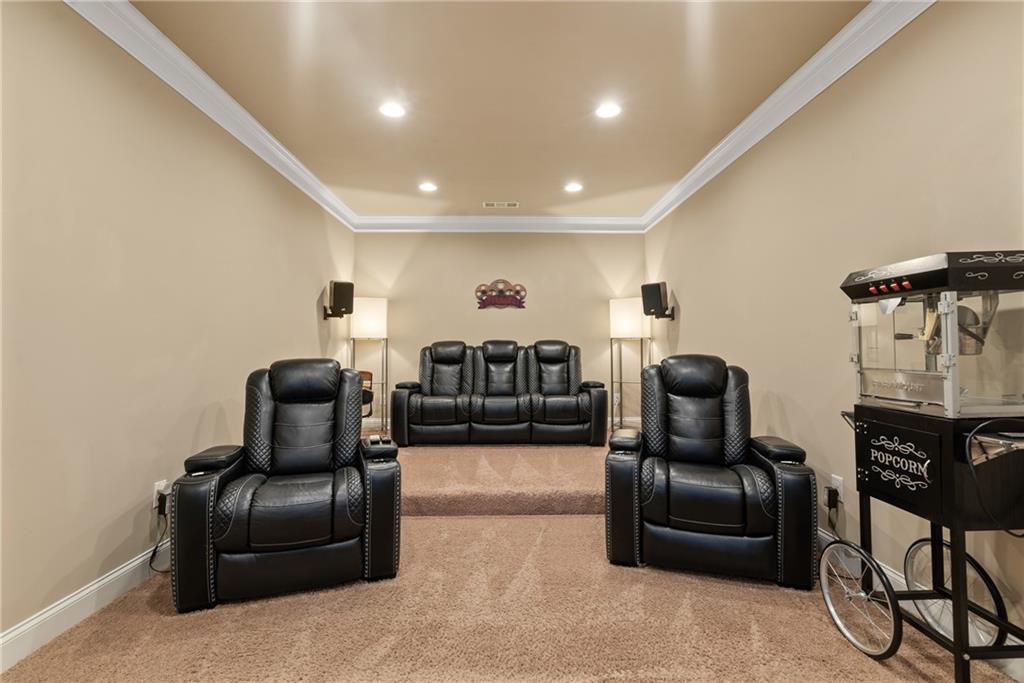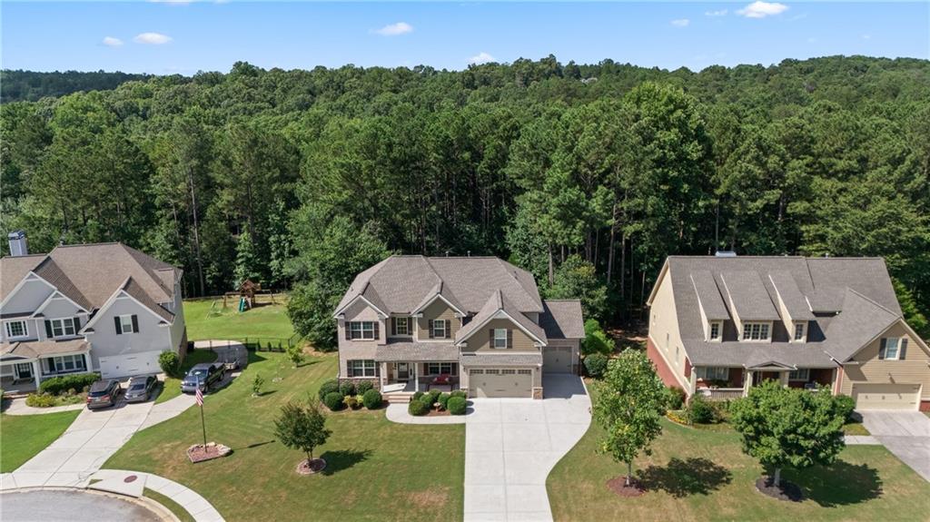 Welcome Home to this exquisite four-bedroom, four bathroom home nestled in the desirable Silver Thorne subdivision. Featuring a spacious and versatile layout, this property offers the perfect blend of comfort, style, and entertainment space. Beautiful hardwood floors and vaulted ceilings create an open and airy atmosphere upon entering. The main level features a formal dining room as well as a fully dedicated office with additional power and wiring added for convenience and to maximize efficiency. The large chef's kitchen with stunning wood cabinets, granite countertops, generous island, and a walk-in pantry is perfect for family gatherings and entertaining. The kitchen opens to the cozy family room featuring a gas fireplace and vaulted ceilings. The main level theater room is ideal for family movie nights, gaming, or just relaxation. Upstairs you will find four bedrooms. The oversized main suite with en-suite featuring his and her vanities, separate soaking tub and shower, and a generous walk-in closet with a built-in closet system. The additional 3 bedrooms share the remaining bathroom. The laundry room is located on the upper level. The partially finished basement features a finished bathroom and dedicated exercise room. The additional unfinished space is a blank canvas, usable as additional storage space, a workshop, or for your own personal customization and finishing. This home is situated on a sprawling .62-acre cul de sac lot, offering ample privacy and outdoor space. The professionally landscaped backyard is stunning with its lush greenery, covered TimberTech deck, additional patio space featuring an impressive large stone fireplace, and upgraded zoysia grass, all perfect for relaxation or entertaining. This is truly an outdoor oasis. This home is a perfect retreat for those seeking space, comfort, and outdoor enjoyment. Don't miss the opportunity to make this exceptional property your new home! Home is close to schools, shopping, restaurants, and local entertainment. Home offers easy access to highways and to interstate.