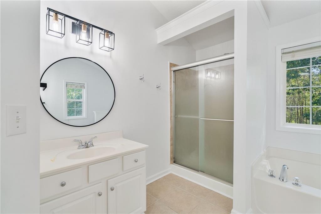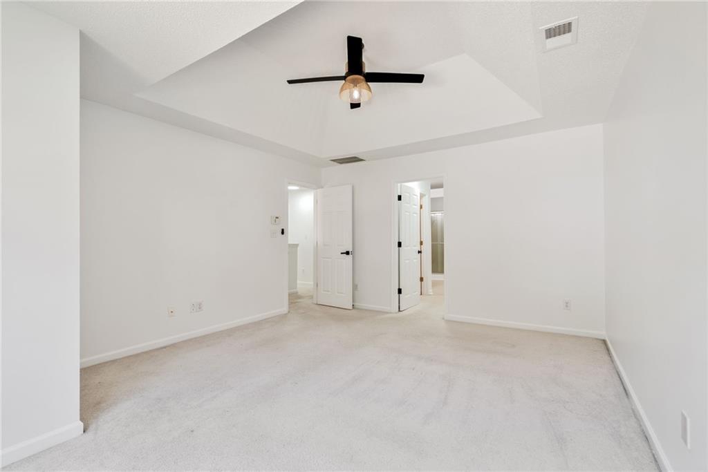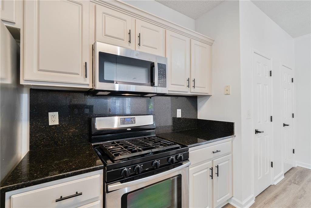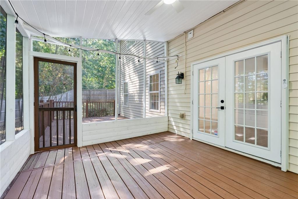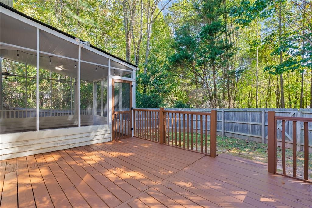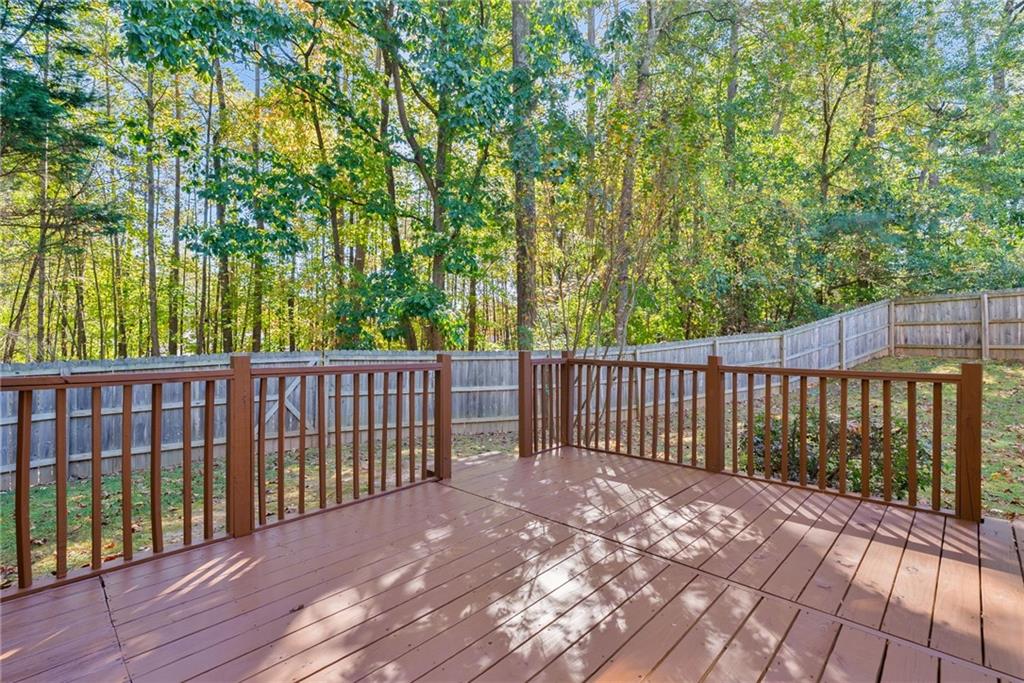 Welcome home to Vinings Cove! This beautifully updated 3-bedroom, 2.5-bath home is perfectly nestled in a quiet cul-de-sac within one of the area’s most desirable communities. Step inside to discover an inviting open layout with brand-new LVP flooring and fresh paint throughout, creating a modern and welcoming feel from the moment you enter. The spacious eat-in kitchen features granite countertops, stainless steel appliances, and clear sightlines to the large living room—perfect for everyday living and entertaining. Other recent updates include a new LG refrigerator, GE microwave, and stylish new light fixtures and hardware throughout the home. French doors lead to a screened-in back porch, now freshly stained, and an oversized deck with new deck boards and stain (2025) overlooking the fenced backyard —a serene, wooded retreat ideal for morning coffee, evening wine, or weekend gatherings under the trees. Upstairs, the owner’s suite impresses with a cozy sitting area, trey ceilings, dual walk-in closets, and a spa-like bath with double vanities, a soaking tub, and a separate shower. Two additional bedrooms—one with direct access to the guest bath—share the upper level, along with a conveniently located laundry room featuring a washer and dryer (2023). Additional highlights include a new exterior fan, a new roof (2020), and a Choice Home Warranty valid through May 1, 2027. Enjoy all the amenities Vinings Cove has to offer, including a swimming pool, tennis courts, playground, and walking trails—all just minutes from shopping and dining, 5 minutes to Whitfield Academy, and only 3 miles to I-285. Move-in ready, thoughtfully updated, and perfectly located—this one truly has it all!