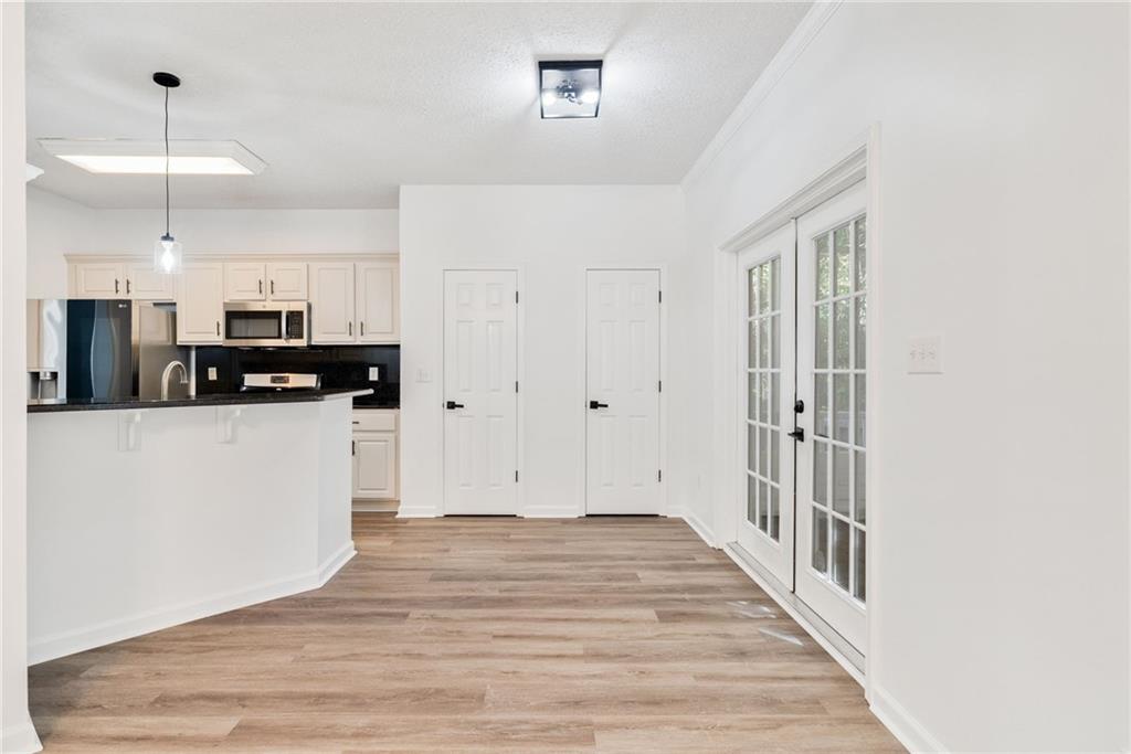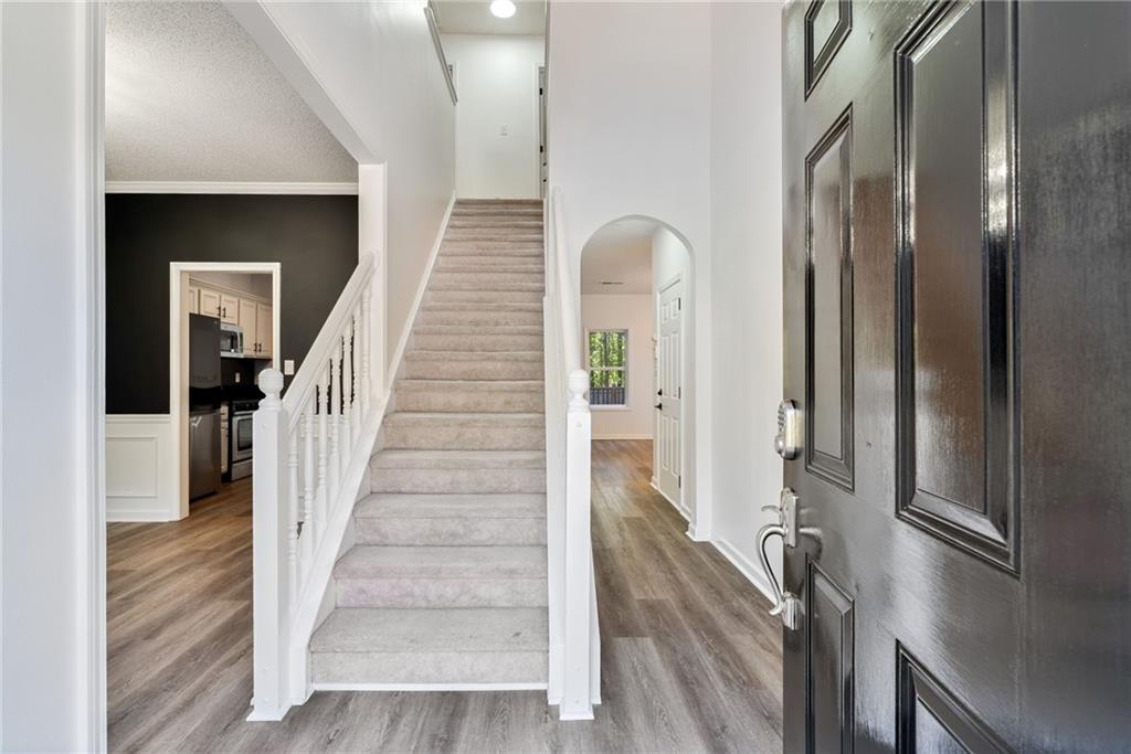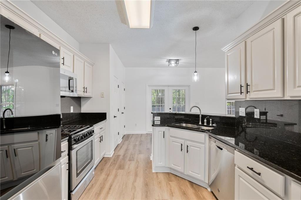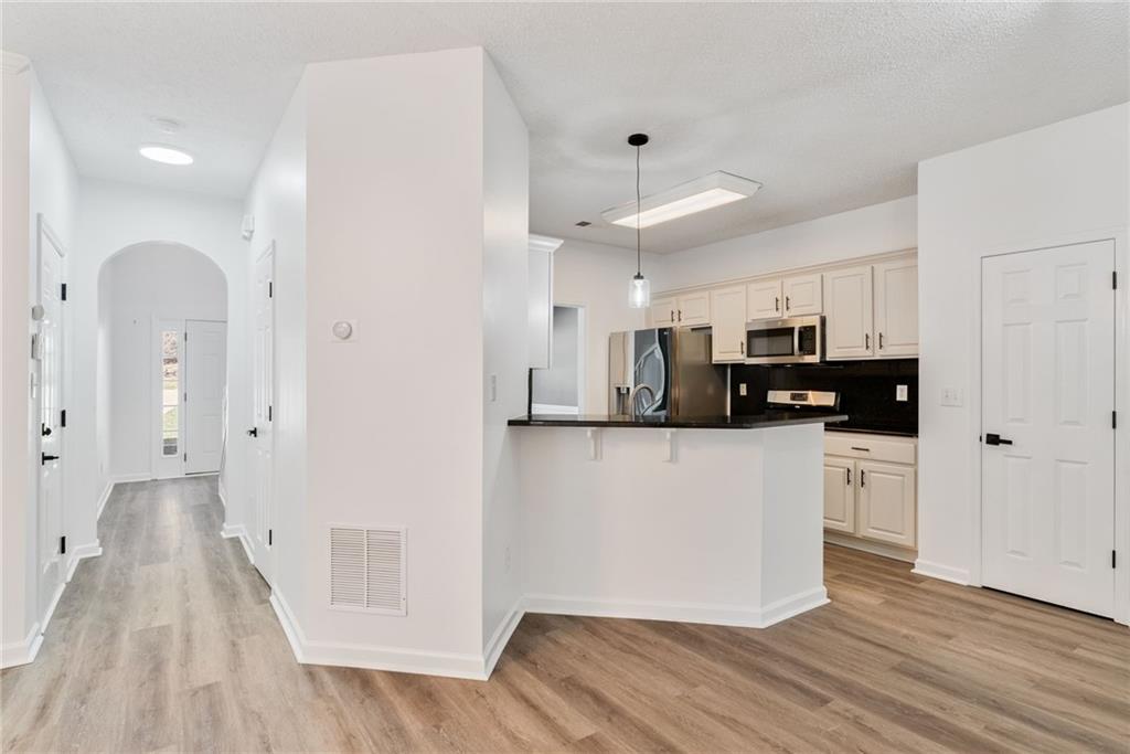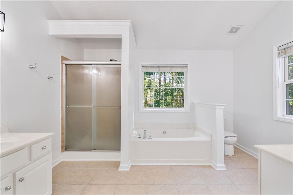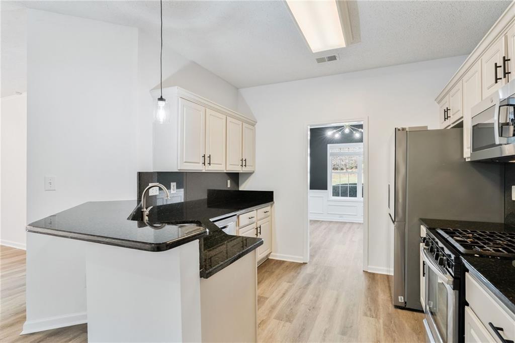 Welcome home to Vinings Cove! This beautifully updated 3-bedroom, 2.5-bath home is perfectly nestled in a quiet cul-de-sac within one of the area’s most desirable communities. Step inside to discover an inviting open layout with brand-new LVP flooring and fresh paint throughout, creating a modern and welcoming feel from the moment you enter. The spacious eat-in kitchen features granite countertops, stainless steel appliances, and clear sightlines to the large living room—perfect for everyday living and entertaining. Other recent updates include a new LG refrigerator, GE microwave, and stylish new light fixtures and hardware throughout the home. French doors lead to a screened-in back porch, now freshly stained, and an oversized deck with new deck boards and stain (2025) overlooking the fenced backyard —a serene, wooded retreat ideal for morning coffee, evening wine, or weekend gatherings under the trees. Upstairs, the owner’s suite impresses with a cozy sitting area, trey ceilings, dual walk-in closets, and a spa-like bath with double vanities, a soaking tub, and a separate shower. Two additional bedrooms—one with direct access to the guest bath—share the upper level, along with a conveniently located laundry room featuring a washer and dryer (2023). Additional highlights include a new exterior fan, a new roof (2020), and a Choice Home Warranty valid through May 1, 2027. Enjoy all the amenities Vinings Cove has to offer, including a swimming pool, tennis courts, playground, and walking trails—all just minutes from shopping and dining, 5 minutes to Whitfield Academy, and only 3 miles to I-285. Move-in ready, thoughtfully updated, and perfectly located—this one truly has it all!