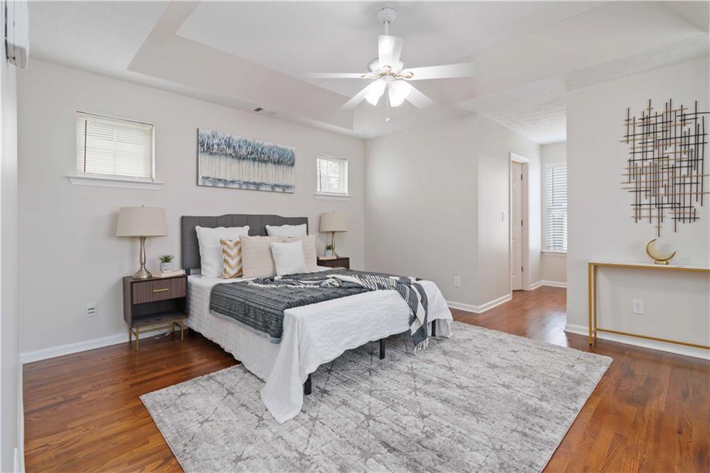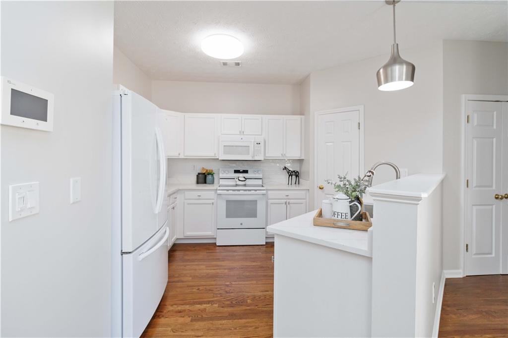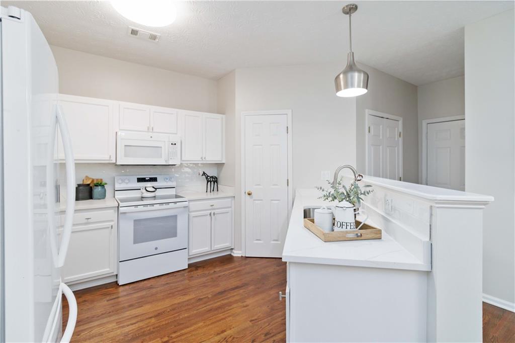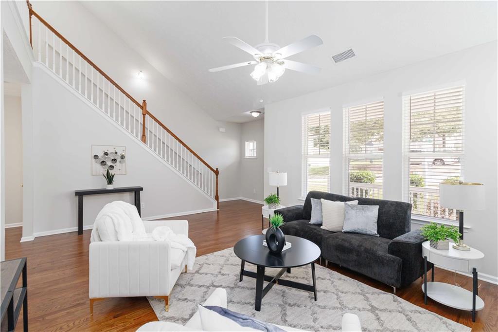 Beautifully Renovated 3-Bedroom, 2.5-Bath Home in a Prime Location! Welcome to this stunning and move-in ready home featuring 3 spacious bedrooms and 2.5 bathrooms. Step inside to a bright and airy 2-story great room with gleaming hardwood floors throughout and a cozy fireplace—perfect for gatherings. The updated kitchen showcases white cabinets, stylish tile backsplash, quartz countertops, a pantry, breakfast bar, and an eat-in dining area. Conveniently located off the kitchen is the laundry room and a half bath for guests. Additional main-level highlights include a closet, under-stair storage, and access to the fully finished, rear-entry garage. Enjoy outdoor living with covered front and back porches, ideal for relaxing or entertaining. Upstairs, the owner’s suite offers a spacious walk-in closet with custom shelving, double vanities, a soaking tub, and a separate shower. The second level also features two secondary bedrooms and a full bathroom with a tub/shower combo. Located in a vibrant community with fantastic amenities including a pool, playground, and clubhouse for events. Conveniently situated near shopping, dining, schools, and major highways. Just minutes from Camp Creek Marketplace and only 10 minutes from Hartsfield-Jackson Atlanta International Airport. Don’t miss the opportunity to own this beautifully updated home in a sought-after location. The location of this property is eligible for 100% financing. Payment assistance program available for 1st time homebuyers.