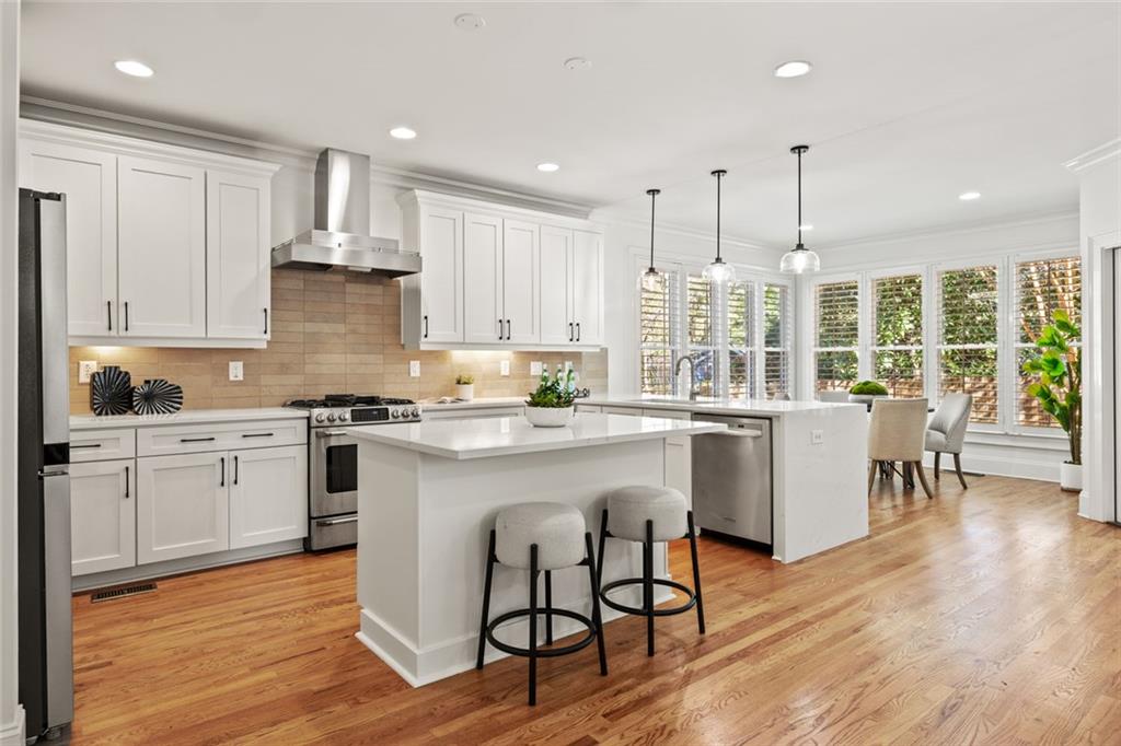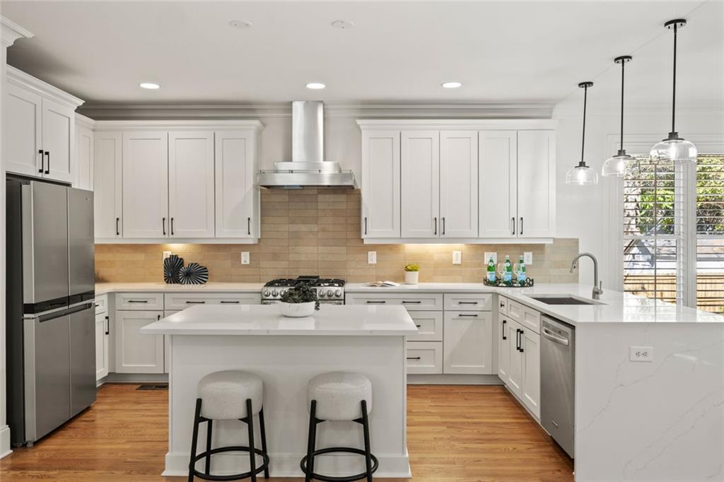 Tucked along a peaceful tree-lined street that feels worlds away—yet minutes from the energy of downtown Decatur, Oakhurst, and Avondale Estates—this modern craftsman blends luxury living with timeless Southern charm. Inside, 10-foot ceilings, hardwood floors, and panoramic windows bringing in natural light create a sense of understated elegance across three beautifully finished levels. The main floor features a gorgeous gourmet kitchen with white cabinetry, quartz countertops, a spacious breakfast bar and separate island, stainless appliances, and a butler’s pantry with wine cooler—all flowing seamlessly into an inviting fireside family room and elegant dining room, perfect for entertaining. French doors open to a screened porch and adjoining deck for grilling, leading to a courtyard patio and a large, fenced backyard—your private outdoor retreat and personal playground. As you travel upstairs, you’ll first discover the newly finished bonus room over the garage, with built-ins, window bench with storage, and double closets—ideal for an office, gym, playroom or even an additional bedroom. Continue up to the luxurious primary suite with its own fireplace, private screened porch, walk-in closet, and spa-inspired bath featuring a frameless dual-head shower, soaking tub, and quartz-topped double vanity. Two additional bedrooms and a full bath complete this level. The third floor offers an impressively large flex suite with full private bath that easily adapts as a media room, in-law or guest suite—whatever your lifestyle demands. What sets this home apart? A rare two-car garage, two screened porches, multiple outdoor living spaces, and quality finishes throughout. Step outside and enjoy the best of Decatur living—the charm, the community, the vibrant eateries and shops of Oakhurst, Downtown Decatur, and Avondale Estates—all just minutes away. Walking distance to the Waldorf School and other private schools. You’re also close to Legacy Park, Dekalb School of the Arts, Emory University, the CDC, and easy access to I-285—all while benefiting from lower unincorporated DeKalb County taxes. Museum School lottery eligible. Serene. Sophisticated. Surprisingly convenient. This is the Decatur lifestyle, perfected.