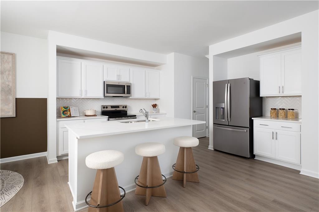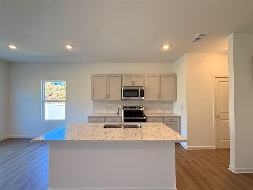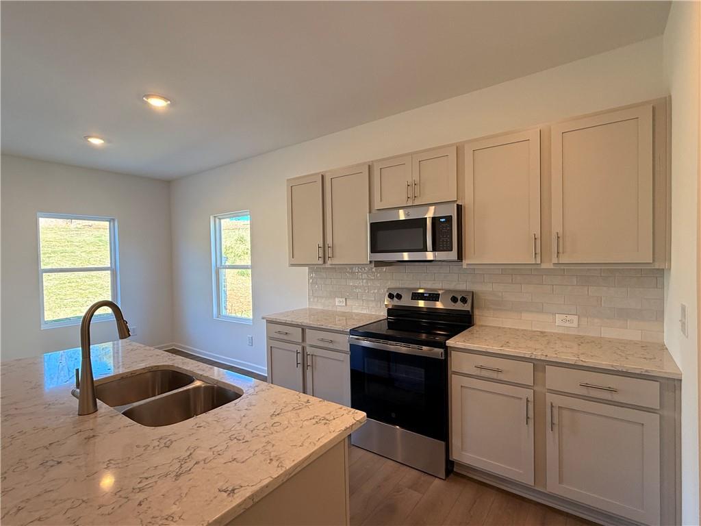 The Marigold Plan features an open-concept main floor, anchored by a gourmet kitchen with stainless-steel appliances and a spacious island. The kitchen flows effortlessly into the dining and family rooms, creating a warm and inviting atmosphere—perfect for everyday living and special gatherings. This thoughtfully designed home showcases Ashton Woods' Milan Design Collection, blending style and comfort. With three bedrooms and two-and-a-half baths, it offers ample space for relaxation. Upstairs, you'll find the expansive Primary Suite, complete with a large walk-in closet and a sophisticated en-suite bathroom featuring a double vanity. Two additional bedrooms, a full bath, and a convenient walk-in laundry room complete the second floor, providing functionality and ease at every turn. Conveniently located just off Mableton Parkway, the community provides a quiet retreat from the city. Residents will enjoy easy access to major highways, including Highway 78, I-20, and I-285, making commuting simple. Nearby shopping and everyday conveniences are also just minutes away. This home is available now! For further details and information on current promotions, please contact an onsite Community Sales Manager. Please note that renderings are for illustrative purposes, and photos may represent sample products of homes under construction. Actual exterior and interior selections may vary by homesite.