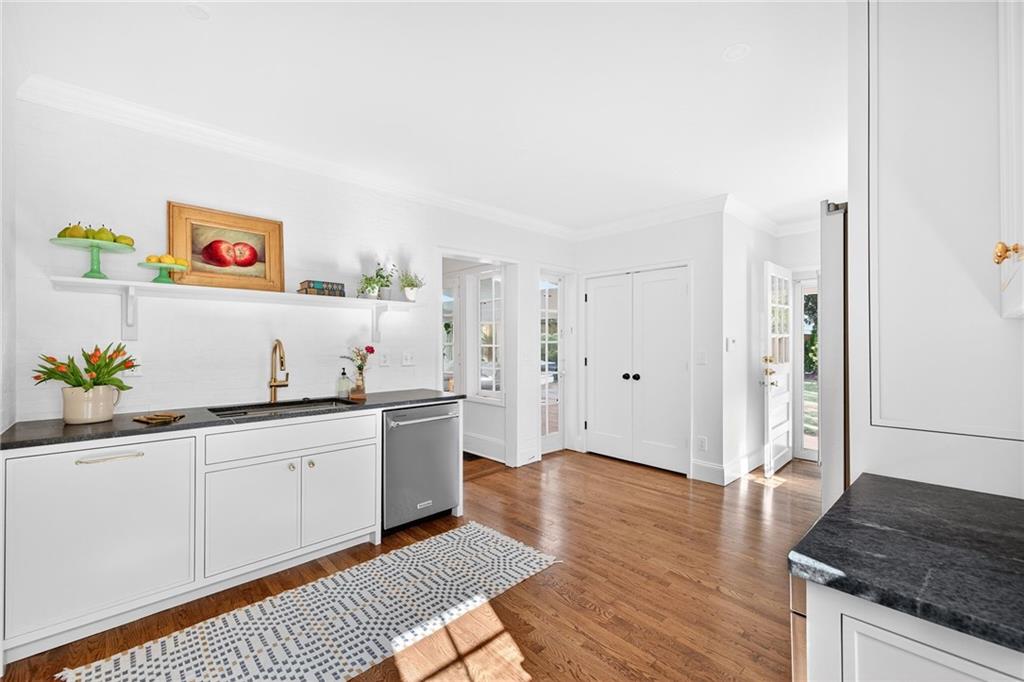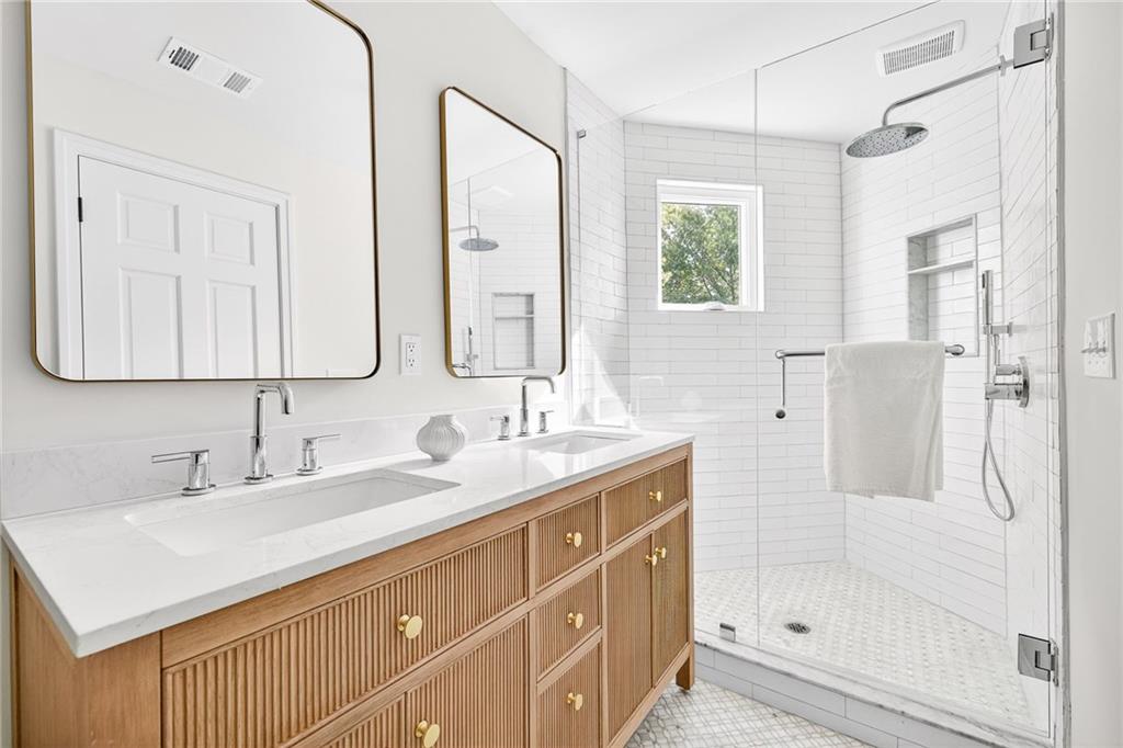 Quintessential Craftsman bungalow in the heart of historic Clairemont Estates—just a short stroll from downtown Decatur. This timeless home blends original character with thoughtful updates throughout. Step inside to a light-filled living room with a classic fireplace, built-ins, and a charming window seat. The central dining room seamlessly connects to the renovated kitchen, which features custom cabinetry, soapstone countertops, stainless steel appliances, and a concealed walk-in pantry. A large sunroom or family room at the back of the home overlooks the professionally landscaped, fenced backyard and private Tek deck—perfect for outdoor entertaining. Two bedrooms and a full bath complete the main level, while the upstairs primary suite offers a serene retreat with two large walk-in closets and a Pinterest-worthy bathroom. Original millwork, leaded-glass windows, and rich architectural details preserve the home's Craftsman soul, while modern comforts make everyday living effortless. Moments from the shops, restaurants, and energy of downtown Decatur—this is classic charm, beautifully reimagined.