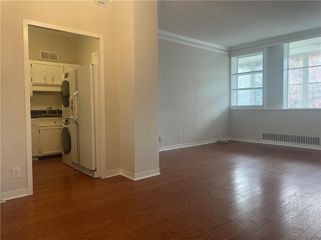 Rare opportunity for a fist floor end unit heart of Buckhead condo in a classic mid-century Heery and Heery building, boasting a spacious 30-foot open-air sunroom balcony perfect for relaxing or entertaining. Kitchen with stack washer & dryer, a primary bedroom with a double closets and balcony access, a secondary bedroom could also serve as a dedicated home office space, and a flat HOA fee covering unlimited utilities and all building maintenance. Residents benefit from a full suite of amenities, including a pool, 24/7 controlled access, and highly rated schools (7-9). This location offers effortless access to Buckhead Village Phipps Plaza & Lenox Square for premier shopping, dining, and entertainment—just a short stroll away! Hardwood floors flow throughout, complemented by wall-to-wall south facing windows that flood the space with natural light year-round. The layout seamlessly connects a sun-drenched family room and dinning area via wall-to-wall windows, while a hallway ensures privacy for the two spacious bedrooms. The unique bathroom layout allows for roommates to separately use the space without interruption. Kitchen includes a stack washer-dryer. Step outside to one of the city’s largest communal green spaces—over four acres of lush landscaped grounds with mature trees, ideal for summer barbecues and poolside social gatherings. For active lifestyles, nearby attractions include Frankie Allen Park, Chastain Park, Bobby Jones Golf Course, and the Atlanta Belt-Line, offering fields, tennis courts, pools, and golf. Explore the scenic Swan House and Gardens, savor upscale experiences in Buckhead Village, or shop conveniently at Whole Foods, Publix, or Trader Joe’s, with charming coffee shops nearby. Enjoy condo living with abundant parking options, an oversized storage unit.