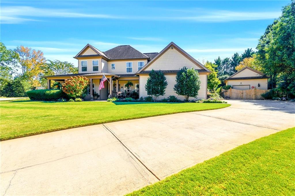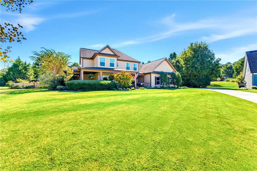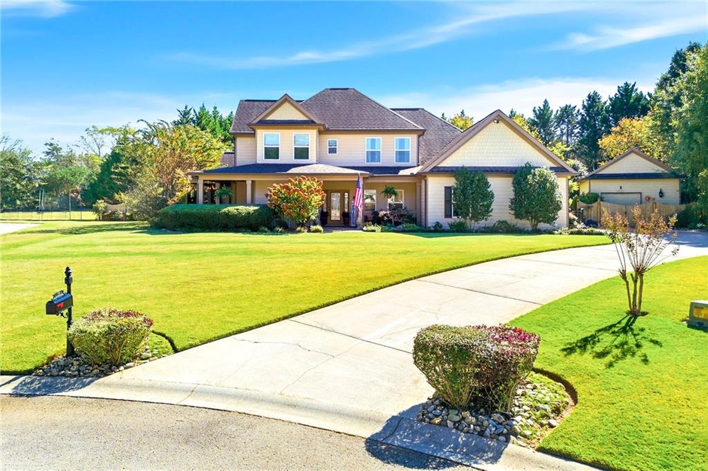 Welcome to 86 Cottonwood — where luxury, comfort, and craftsmanship meet! This stunning 4-bedroom, 2.5-bath home was a complete new build, finished and purchased in March 2014, and offers over 3,000 sq. ft. of beautifully designed living space. Perfectly situated at the end of a quiet cul-de-sac, this property provides privacy, serenity, and a true sense of retreat. Step inside to discover 9’ ceilings throughout the main level, with soaring 18’ ceilings in the living room and master suite that create a grand, open feel. The home features gorgeous Pecan hand-scraped hardwood floors throughout most of the main level, adding warmth and elegance to the space. The chef’s kitchen is both stylish and functional, boasting solid wood cabinetry, granite countertops, a tile backsplash, a large island, and a 6’x12’ walk-in pantry—a true rarity! High-end appliances include a gas stove with an extra center burner, self/steam-cleaning oven, stainless-steel refrigerator, microwave, and KitchenAid dishwasher. A bright breakfast area, formal dining room, large laundry/mudroom, and a powder room complete the thoughtfully designed main floor. The inviting living room showcases custom drapes framing the tall feature wall, matching Roman shades, and a gas-log fireplace with exquisite molding and texture-painted detail. A charming office with French glass-paned doors offers a peaceful view of the outdoors—perfect for remote work or reading. The main-floor master suite is truly a retreat, with its cathedral ceilings, crown molding, oversized walk-in closet (featuring built-in cubicle shelving), and a spa-inspired ensuite with granite double vanity, soaking tub, and large tiled shower with bench seating. Upstairs, you’ll find three spacious bedrooms, all with new carpet and large closets, plus a second full bath with dual vanities set apart for added privacy. A flex space off the hallway makes an ideal prayer room, workout area, or play zone. The home also includes an attached two-car garage plus an oversized detached garage accommodating one car, both equipped with ceiling storage racks. The main garage features Whirlpool Gladiator heavy-duty cabinets, and the Sunlighten Near/Mid/Far Infrared Sauna may remain with the home by separate consideration. Both AC units and furnace air returns were replaced and upgraded in 2024, ensuring enhanced comfort, energy efficiency, and peace of mind for years to come. Outside, enjoy your wrap-around front/side porch with paver walkway and a cozy corner nook perfect for morning coffee or evening wine under a chandelier. The backyard oasis features an expansive paver stone patio, built-in grill and smoker enclosure, firepit with L-shaped bench, and plenty of room for entertaining. Beautiful backyard gardens complement the lush, professionally landscaped yard, which includes River Birches, Hollies, Hydrangeas, Magnolias, Azaleas, Roses of Sharon, Leyland Cypresses, Crepe Myrtles, Japanese Maples, Camellias, and perennials—creating a private garden paradise. Located in a top-rated school district, including the award-winning Jackson County High School, this home combines elegance, functionality, and location into one exceptional property. 86 Cottonwood truly has it all—space, quality, and a sense of home you can feel the moment you arrive.