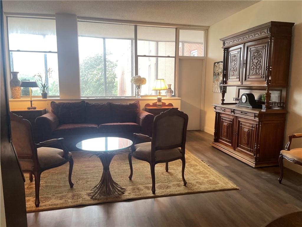 Walk to all Buckhead has to offer at this incredible rate. This oversized 2 bedroom unit is tucked away on private cul-de-sac in the center of Buckhead and is not to be missed! Tall ceilings with newly installed luxury vinyl plank flooring and newly remodeled kitchen enhances the European Styling and gives you Parisian vibes. Fully furnished option, this unit has tons of windows for great light enhancing the spacious screened porch that runs the full length of the condo with treetop views of the southeastern Buckhead Skyline. HOA fee is basically all inclusive and includes unlimited utilities (power, heat & air, water, trash, sewer) & this is a no pet building. Additional fee for designated parking options are gated garage, gated lot or open lot depending on availability. Building has daily on site management, a maintenance team, library conference room, gym, pool, grilling area garden area with gazebo and special secure pedestrian access to Saint Regis Drive, Whole Foods and all the dinning or night life options Buckhead offers. Also offered for rent furnished.