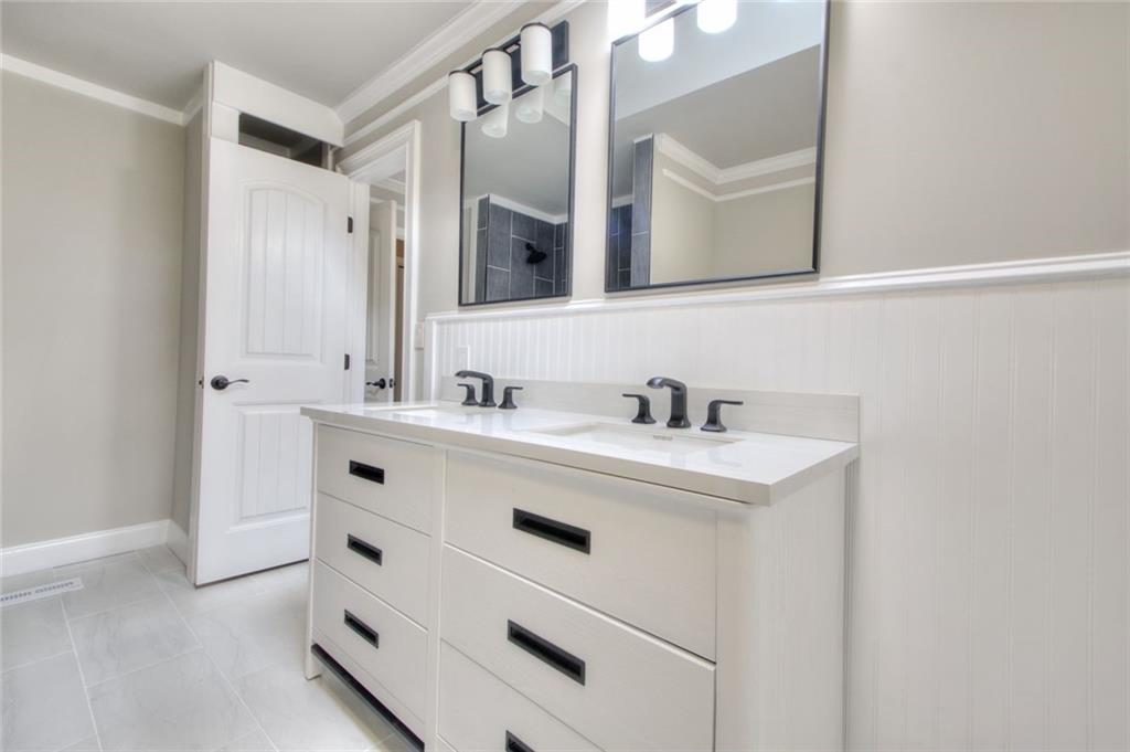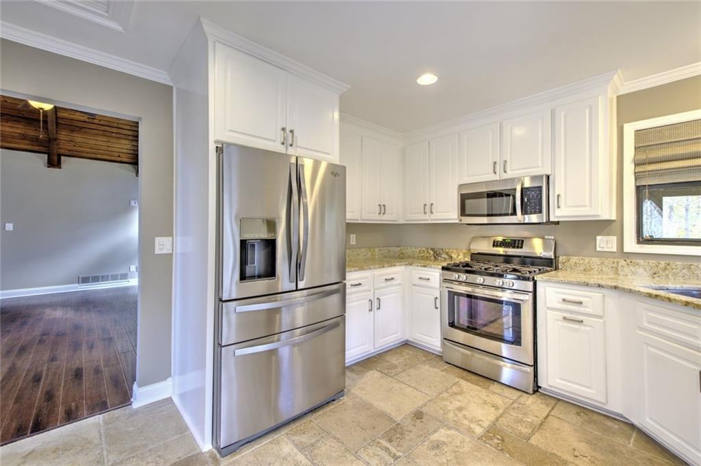 Beautifully Renovated Contemporary Home in Desirable East Cobb – Pope High School District. Welcome to Post Oak Springs, nestled in the highly sought-after East Cobb area within the top-rated Pope High School district. This newly renovated contemporary residence offers 4 spacious bedrooms and 3 full bathrooms on a generous .72-acre lot with a fully fenced backyard, three expansive decks, and a two-car garage with a dedicated workshop area. Step inside to discover a freshly updated interior, featuring new paint throughout, new carpet, and hardwood flooring. The home showcases modern finishes including new crown molding, 6-inch baseboards, upgraded doors, lighting fixtures, receptacles, and sleek panel light switches. The renovated kitchen is a showstopper, boasting Level 5 granite countertops, travertine tile floors, newer stainless steel appliances, and a side-by-side refrigerator. All bathrooms and bedrooms have been tastefully updated, creating a move-in-ready experience. Additional highlights include two fireplaces, a heated and cooled sunroom, and a brand-new electrical panel box. The fairly new energy-efficient Rheem HVAC system ensures comfort year-round. Outside, enjoy one of the largest private backyards in the neighborhood